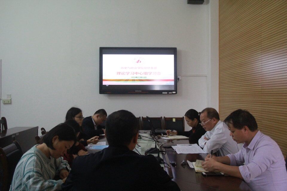 为坚持学原文、读原著、悟原理,推进“不忘初心、牢记使命”主题教育的深入开展,历史与社会学院党总支部于2019年11月13日下午,在弘毅楼2-409会议室召开理论学习中心组学习会。会议由学院党总支部书记黄永明主持。