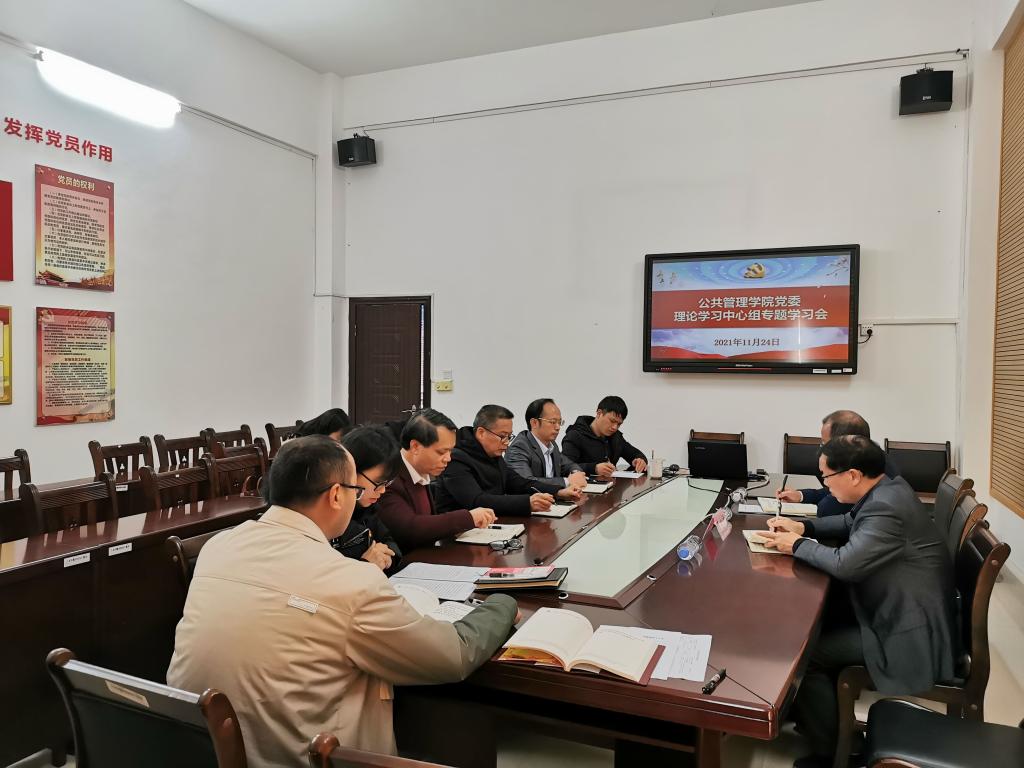 2021年11月24日下午,必赢3003no1线路检测中心党委理论学习中心组专题学习党的十九届六中全会精神。学校党委常委、副校长韦文广参加会议。学院党委书记黄永明主持会议。