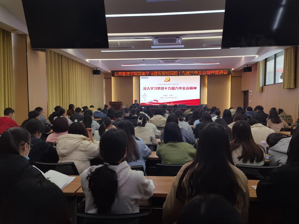 他指出,党的十九届六中全会是在重要历史时期、重大历史关头召开的一次具有里程碑意义的会议,学习好、宣传好、贯彻好、落实好全会精神,最为关键的是要深入领会“两个确立”的决定性意义,深刻理解其中蕴含的理论逻辑、历史逻辑、实践逻辑,更加坚定自觉地做到“两个维护”。全院师生要全面系统学,准确把握全会精神的核心要义,自觉从党的百年奋斗历程中汲取智慧和力量,感悟初心和使命。要联系实际学,坚持学用结合、学以致用,切实在学懂、弄通、做实上下功夫,把学习的成效不断转化为工作的动力和实效。