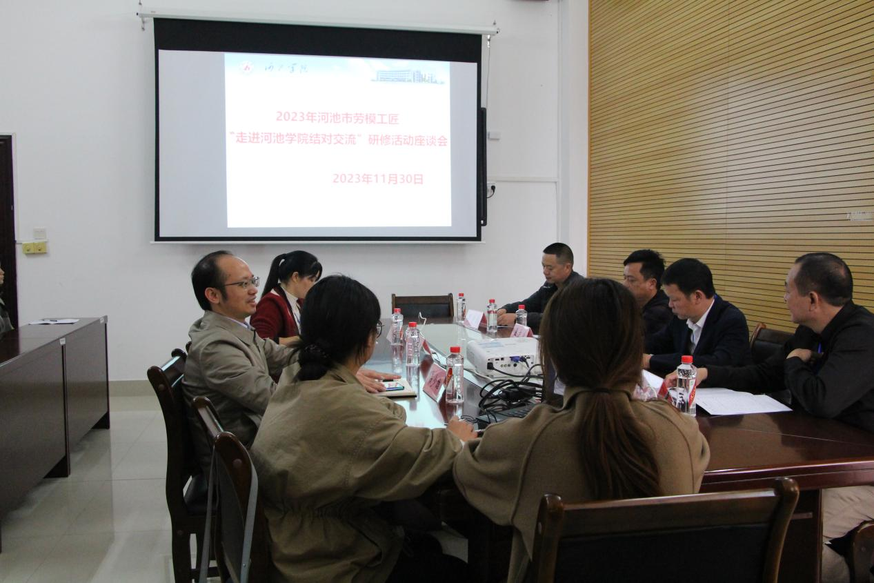 为进一步学习、宣传和贯彻党的二十大精神,弘扬“劳模精神”“劳动精神”和“工匠精神”,培养有理想、敢担当、能吃苦、肯奋斗的新时代好青年,11月30日下午,河池市2023年劳模工匠与必赢3003no1线路检测中心教师、青年学子进行面对面研修交流,分享职业感悟与劳动故事。活动由学院院长韦少雄主持,罗宇成、覃志业、覃喜德、李建良、韦春柳、兰雄杰等6位劳模工匠,学院学生代表参加。