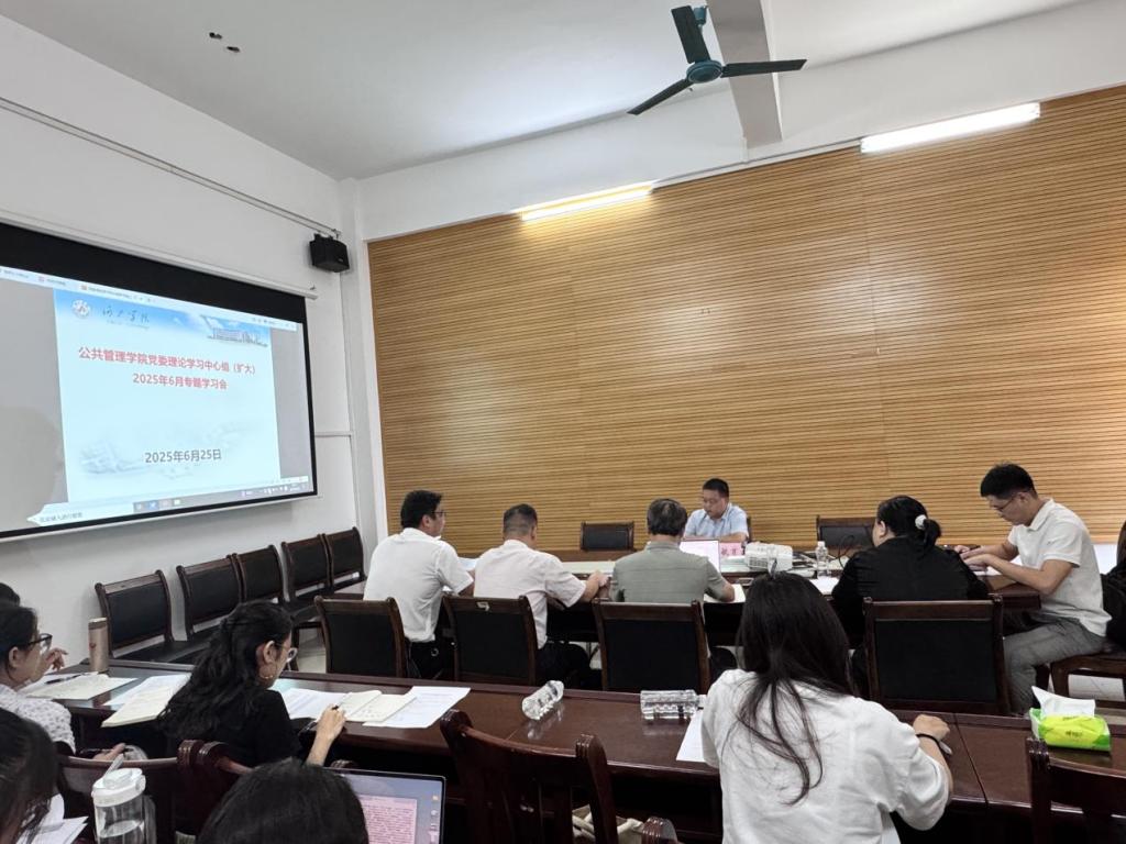 6月25日,必赢3003no1线路检测中心党委理论学习中心组2025年6月专题学习会在弘毅楼2区409会议室召开,学校党委常委、副校长唐毓首列席并进行点评。会议由学院党委书记韦福主持,学院党委理论学习中心组成员参加学习,学院副院长孙明明、学院办公室主任、各教研室主任和副主任、各党支部书记和副书记、党委专职组织员列席学习会。