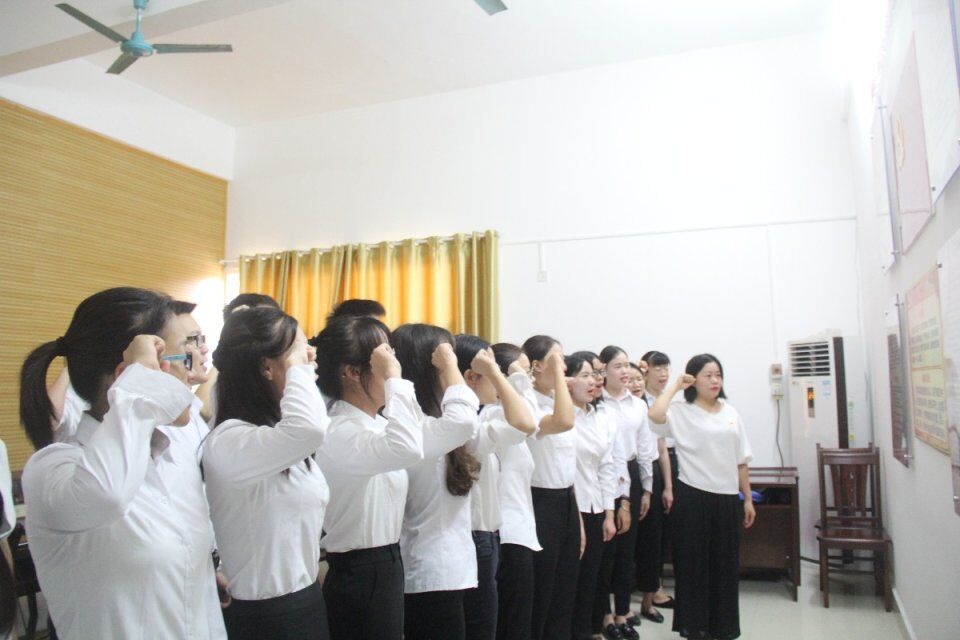 6月26日下午,历史与社会学院党总支部在弘毅楼2-409党员活动室举行新党员入党宣誓暨老党员重温入党誓词仪式。出席本次活动的有学院领导班子成员、18名新党员和在校全体老党员。本次宣誓仪式由覃秋桃同志主持。