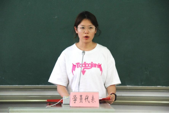 随后,2021级历史学专业张蕊同学代表学员发言。她表示,全体学员将珍惜培训机会,认真学习习近平新时代中国特色社会主义思想和党的二十大精神,学习党的理论和知识,努力提升思想政治素质,高质量完成培训班任务。全体学员将永远保持奋斗精神,不负韶华,只争朝夕,为实现中华民族伟大复兴的中国梦不懈奋斗!