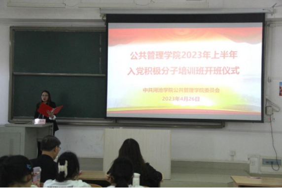 2023年4月26日,必赢3003no1线路检测中心在弘毅楼2区403教室举行2023年上半年入党积极分子开班仪式。学院党委书记韦福、学生第一党支部书记何丽秀、学生第二党支部书记覃露兴、学生第三党支部副书记郝彦霞出席,91名入党积极分子参加。开班仪式由覃露兴主持。