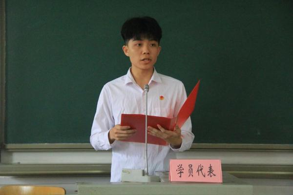 随后,培训班学员代表高亮发言。他分享了培训期间的学习成果与成长经历,表达了争取早日入党、为党和人民事业奉献青春的坚定信念。