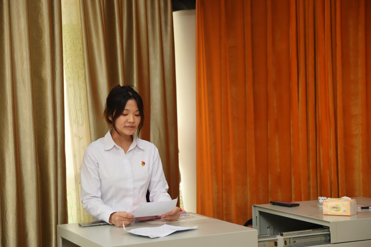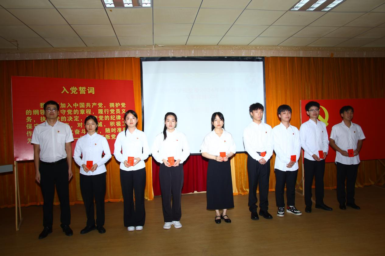 宣誓结束后,胡梦婷代表新党员发言。黄江凯为新党员颁发了党费证,并对新党员表示衷心祝贺。