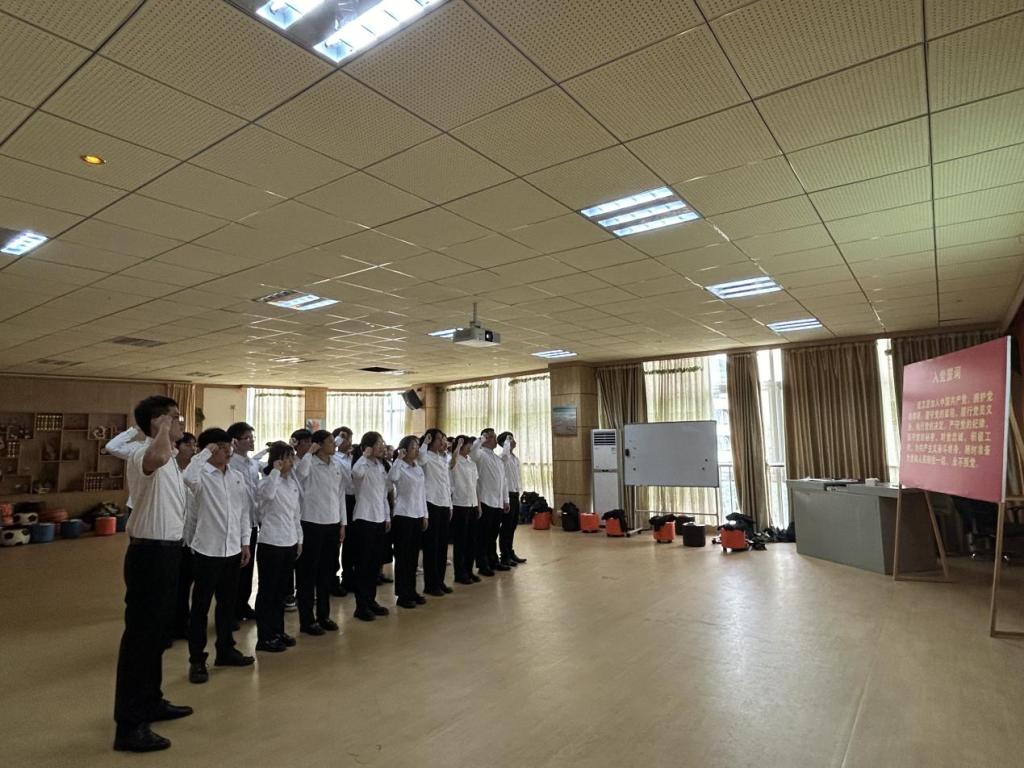 宣誓仪式在国歌声中拉开序幕。黄江凯带领全体新党员面向党旗,高举右拳,庄严宣誓。铮铮誓言,表达了新党员们对党的无限忠诚和为党的事业奋斗终身的坚定信念。