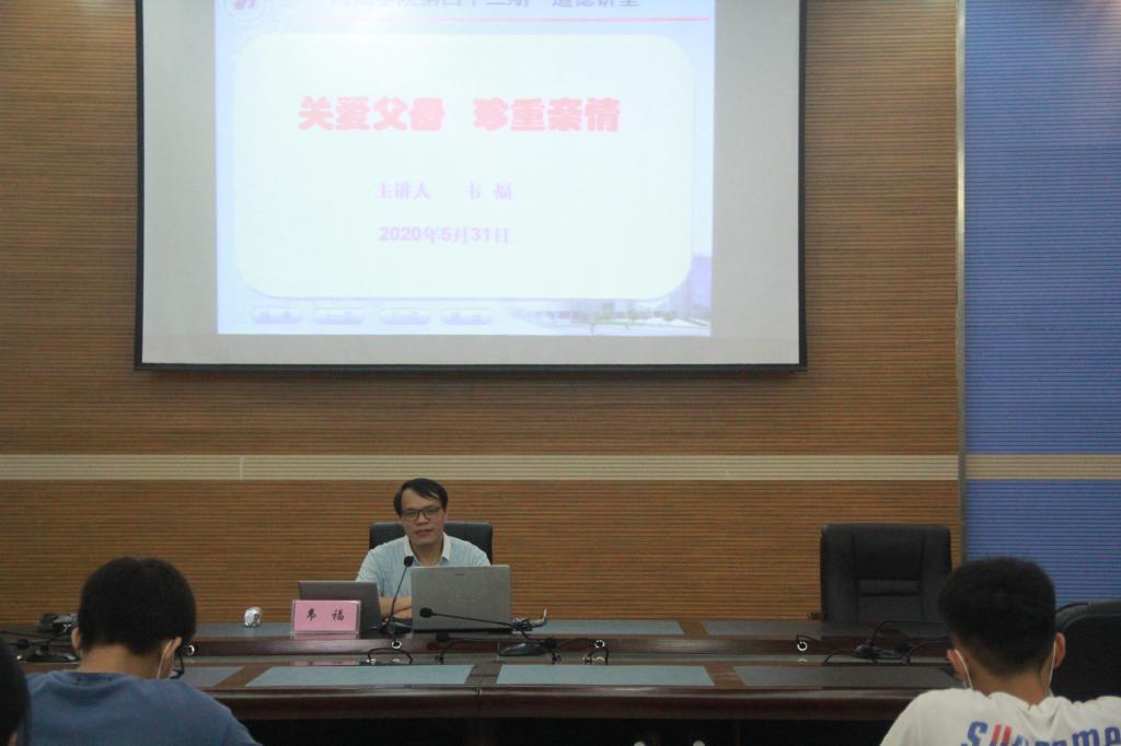 5月31日晚,河池学院第四十二期道德讲堂“关爱父母,珍重亲情”在图书馆122报告厅举行。道德讲堂由历史与社会学院承办,该院副院长韦福主讲,该院全体入党积极分子到场聆听。