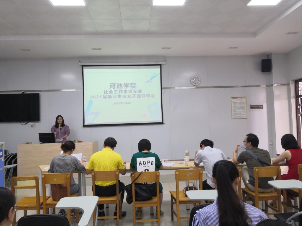 毕业论文是本科教育的一个重要教学环节,是整个教学计划中的重要组成部分,对于提高培养质量具有重要意义。为了做好毕业论文的管理工作,保证毕业论文质量,检验社会工作本科专业2017级学生运用社会工作理论视角分析社会工作管理和服务领域中具体问题的能力,202074日上午830分,河池学院社会工作本科专业2021届毕业生论文开题评审会在弘毅楼3503室如期举行,答辩评委由王晓波、唐乐、韦福、张正、张和荣、邱惠婷六位专任老师担任,社会工作本科专业2017级全体同学参加了此次答辩。