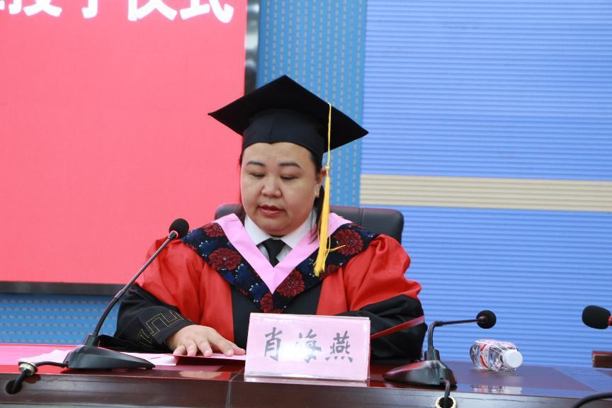 仪式的第二环节是优秀毕业论文表彰、教师祝福、颁发毕业证书和拨穗仪式。首先,学院副院长肖海燕宣读河池学院2023届本科生优秀毕业论文和河池学院必赢3003no1线路检测中心2023届本科生优秀毕业论文名单。