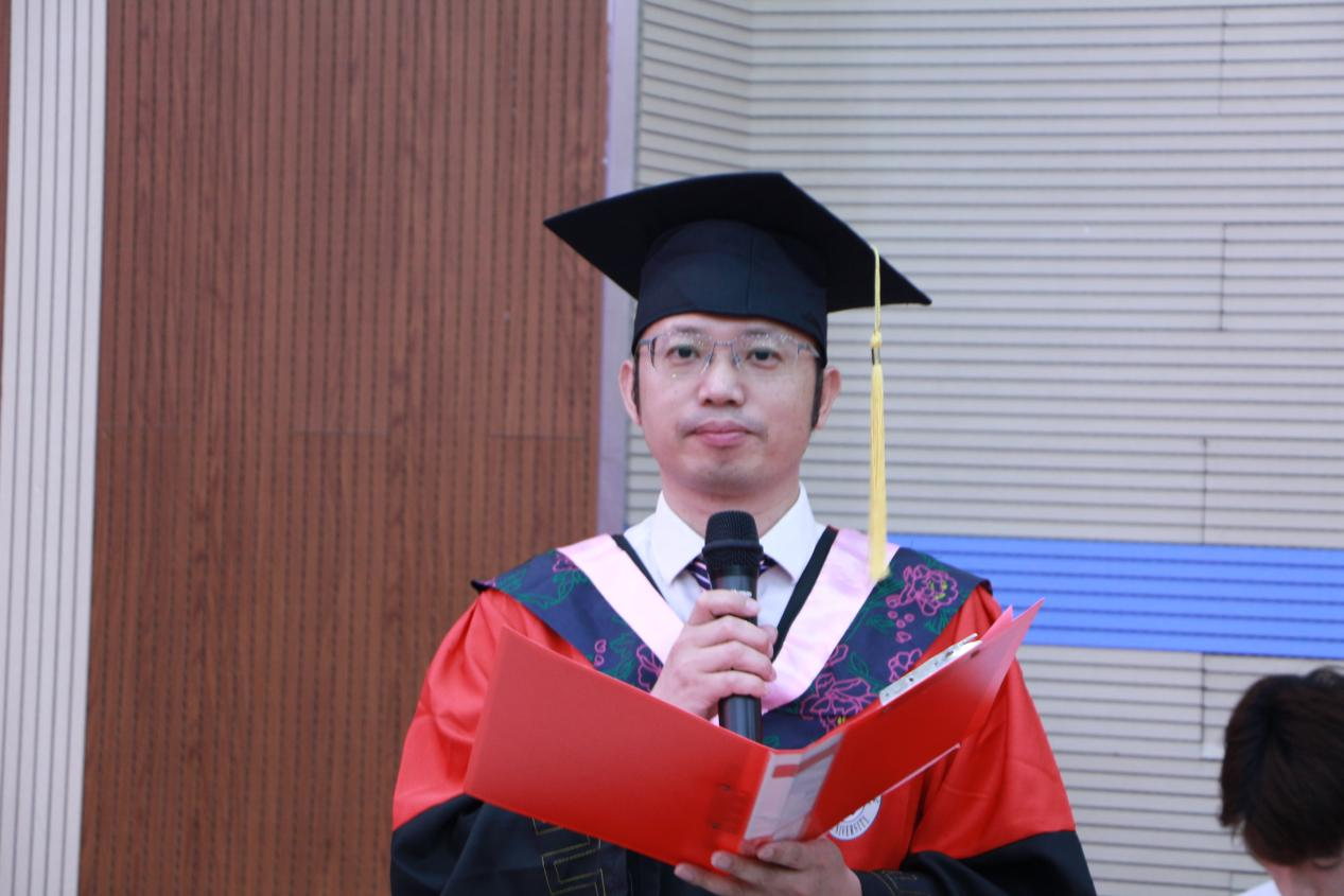 紧接着,学院院长韦少雄为毕业生作毕业寄语,他指出:“人生一世,草木一秋,最富情怀的希冀,便是选择了热爱。人生中能有自己热爱的事,是件幸事,能一直坚持做这件事,是件福事,能让这件事产生价值、奉献社会、成就自己,是件了不起的事。因为热爱,所以纵使前景黯淡,我们也会点起心中的明灯探寻前方的路;因为热爱,所以纵使前路荆刺丛生,我们也会坦然无惧砥砺前行。”这既是对同学们的谆谆嘱托,也是对未来寄予的殷切希望。