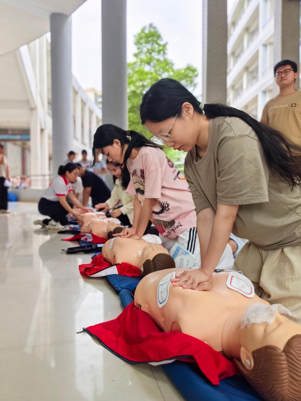 同学们在模拟人操作、创伤包扎演练中积极互动,反复练习直至动作规范。参与培训学生均通过了相关知识和技能的考核,将获得由广西红十字会颁发的“CPR+AED心肺复苏”培训电子证书。