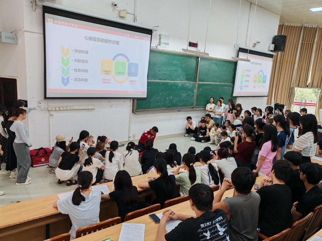 为掌握安全急救知识,提升应急救护能力,必赢3003no1线路检测中心近700名师生参加了河池市红十字会于5月17日-18日、5月24日-25日开展的应急救护培训活动。