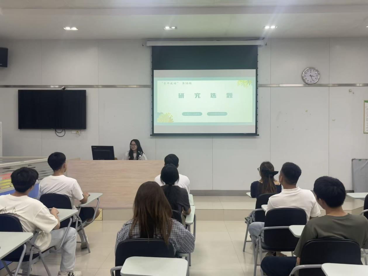 党支部副书记王晓波聚焦学生在大创项目申报、调查研究实践及毕业论文撰写中普遍面临的选题困惑,通过深入探讨“什么是好选题?”“如何找到好选题?”以及“从好的选题到‘美’的标题”三大核心议题,为参会学生提供了系统的指导。交流中不仅厘清了优秀选题应具备的理论价值、现实意义、创新性与可行性等核心规范,更分享了从专业文献、社会热点、实践痛点、政策导向等多维度发掘研究灵感的实用路径,并解析了如何将初步构想凝练为精准且富有吸引力的标题。