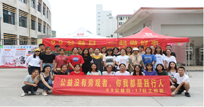 8. 为了倡导公益理念,弘扬社会文明风气,提高大家对公益日的熟识度,让更多的同学关注公益并自主投身其中。 2019年9月9日,我校社会工作系和河池市乐助社会工作服务与研究中心策划并联合河池学院大学生社会工作协会在我校东西区组织举办了“99公益日”宣传活动。此次活动使更多的学生对“99公益日”有了更深刻的认识,使公益在我校产生了新的公益力量,让爱心延续,温暖整个社会。