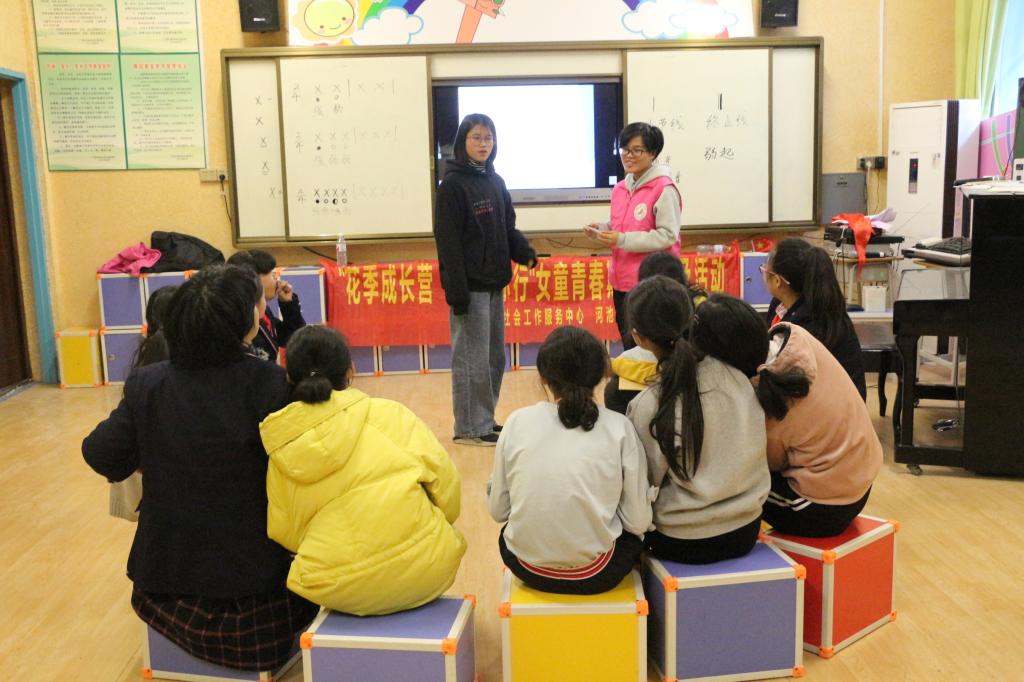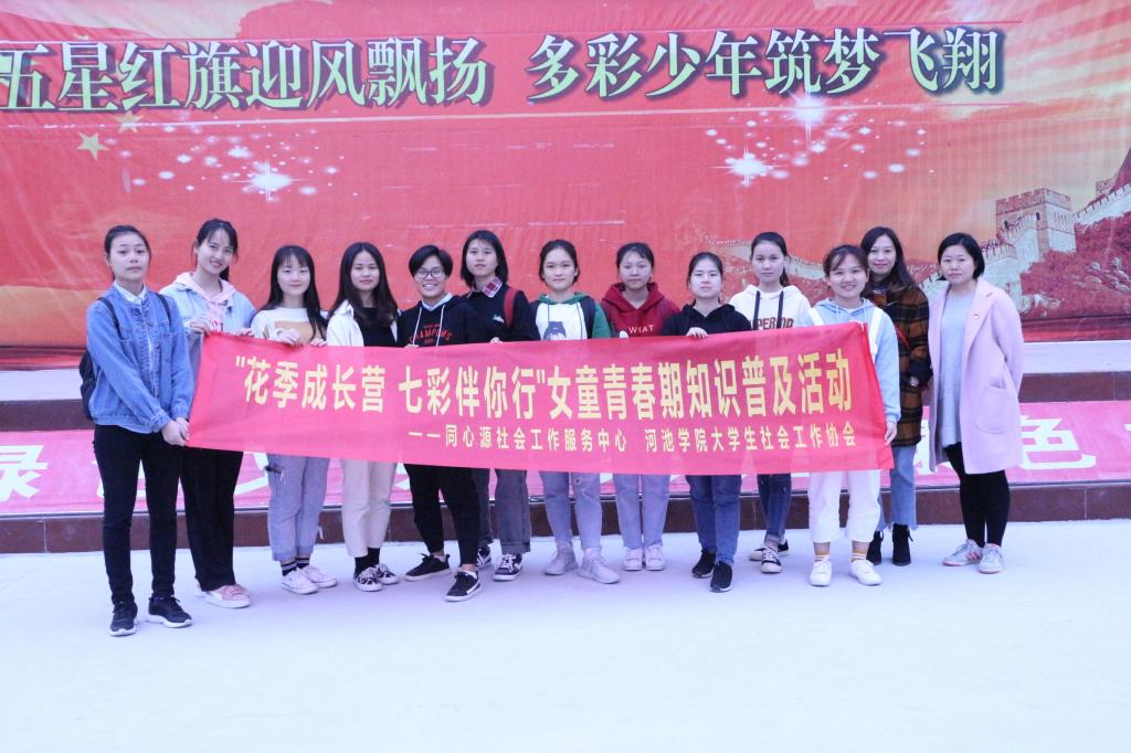 12月9日,由广西同心源社会工作服务中心主办、历史与社会学院党总支、河池学院大学生社会工作协会承办的“花季成长营,七彩伴你行”女童青春期知识普及活动在宜州区第二小学圆满结束。本次活动共三期,由必赢3003no1线路检测中心社工教研室党支部书记、社会工作系主任王晓波全程指导,必赢3003no1线路检测中心党总支委陈玉婷参与,大学生社会工作协会、必赢3003no1线路检测中心党支部志愿服务队的部分成员共同组织开展活动。