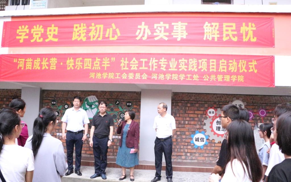 送去五月的芬芳,迎来六月的时光,2021年6月1日下午,我校“河苗成长营·快乐四点半”社会工作专业实践项目在河池学院东区雅园9栋一楼举行启动仪式。我校党委常委、副校长、工会主席韦文广、工会常务副主席刘旭辉、学工部(处)长田光灿、必赢3003no1线路检测中心党委书记黄永明以及校工会、学生部(处)、必赢3003no1线路检测中心师生出席启动仪式。