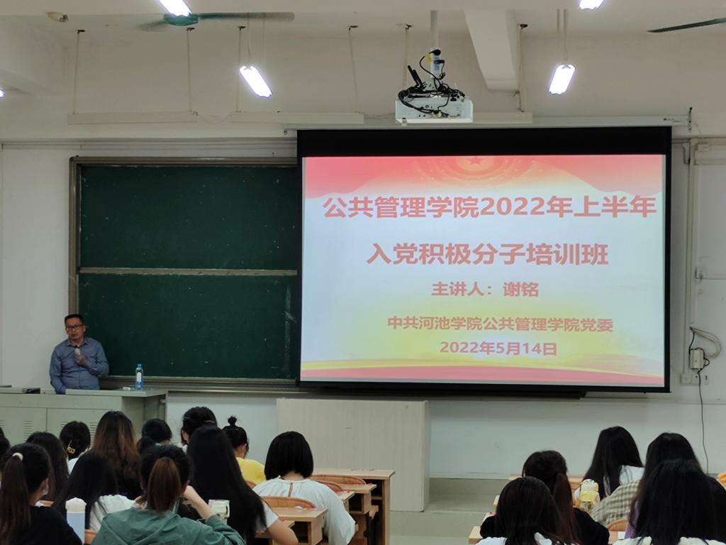 为了引导入党积极分子树立坚定的理想信念,筑牢思想根基。5月14日晚,在弘毅楼2-406教室,公管学院开展主题为“百色起义精神及当代价值”的入党积极分子专题教育培训。培训由谢铭教授主讲,学院全体入党积极分子参加了培训。