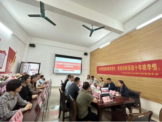 2023年4月29日,必赢3003no1线路检测中心召开2009级行政管理专业毕业十周年校友座谈会,学校办公室副主任钟卓良、学院副院长肖海燕等领导、老师及部分校友代表出席。