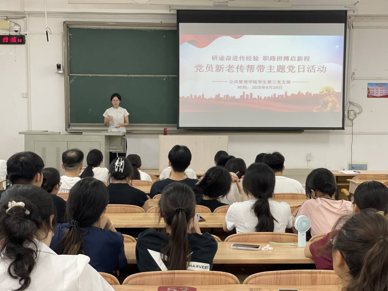 活动中,2025届毕业生党员结合自身经历,就专业学习、考研、比赛竞赛、职业规划等方面进行了经验分享。
