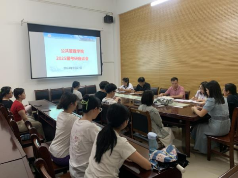 为进一步推进2025届毕业生的考研工作,9月28日下午,学院在弘毅楼2区409举行了2025届毕业生考研交流座谈会。学院党委副书记钟卓良、历史教研室主任王向然、社工教研室主任唐乐、行管教研室副主任戴杨艳、分管就业辅导员黄江凯、何丽秀以及2025届毕业生备考的同学参加了座谈会。