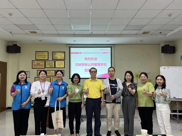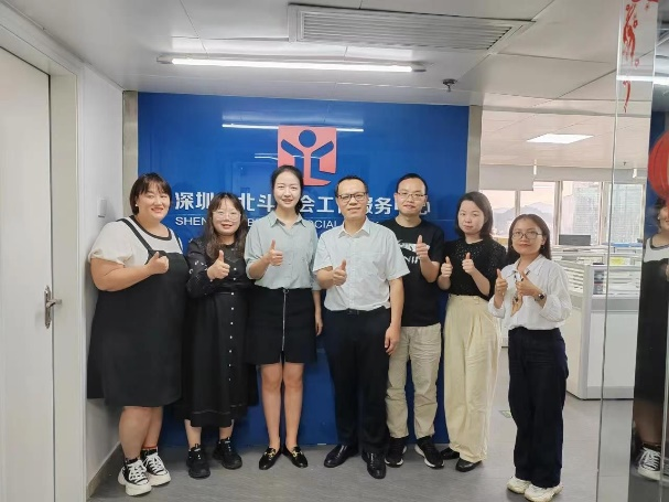 韦福一行先后前往深圳市社联社工服务中心、深圳市北斗社会工作服务中心、深圳市宝安区尚德社会工作服务社、广州市社会组织联合会、广州市普爱社会工作服务社等组织机构实地考察,探访了在机构工作的校友,深入了解各机构的运营模式和人才需求情况,并围绕毕业生就业、岗位开拓、人才联合培养、教学科研、实习就业基地建设等方面与机构座谈交流,为今后进一步合作打下坚实基础。